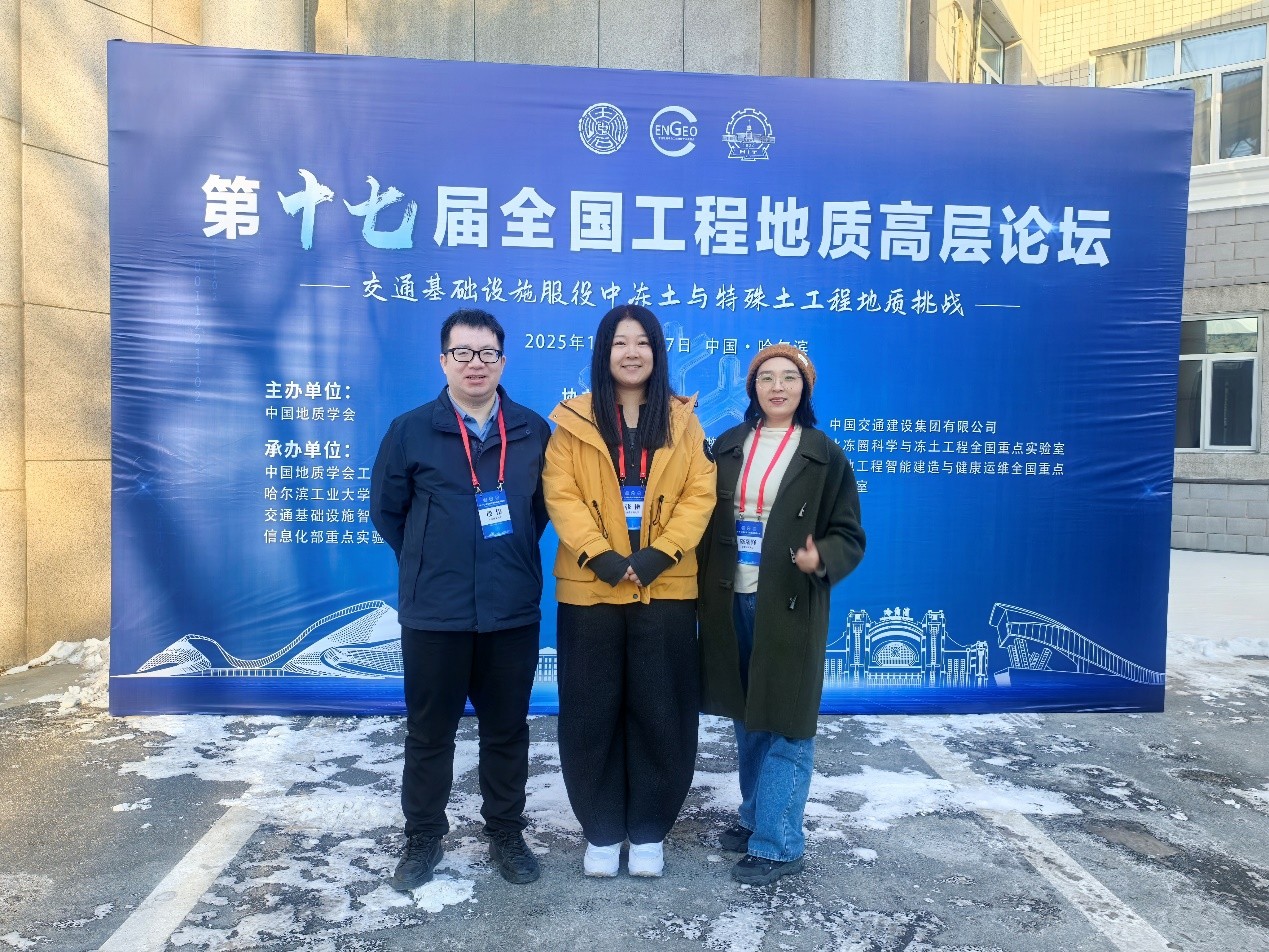 2025年12月26日至30日,第十七届全国工程地质高层论坛在哈尔滨工业大学圆满召开。本次论坛由中国地质学会主办,中国地质学会工程地质专业委员会、哈尔滨工业大学、交通基础设施智能监测与预警工业和信息化部重点实验室联合承办。中国科学院院士、国家自然科学青年科学基金项目(A类)获得者等100余位知名专家、学者齐聚冰城哈尔滨,围绕“交通基础设施服役中冻土与特殊土工程地质挑战”主题,共话工程地质学科前沿动态,为应对冻土与特殊土工程地质贡献智慧力量。团队段伟(太原理工大学)、张艳(安徽建筑大学)、陈瑞锋(安徽建筑大学)等老师参加了此次学术论坛。